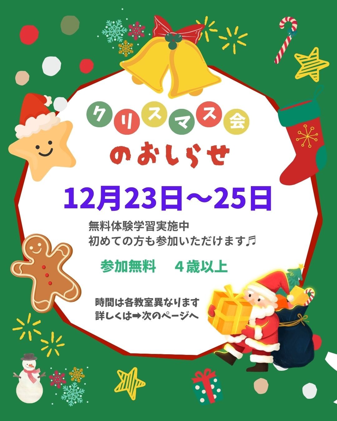 「クリスマスパーティ&そろばん体験教室」 を開催いたします。