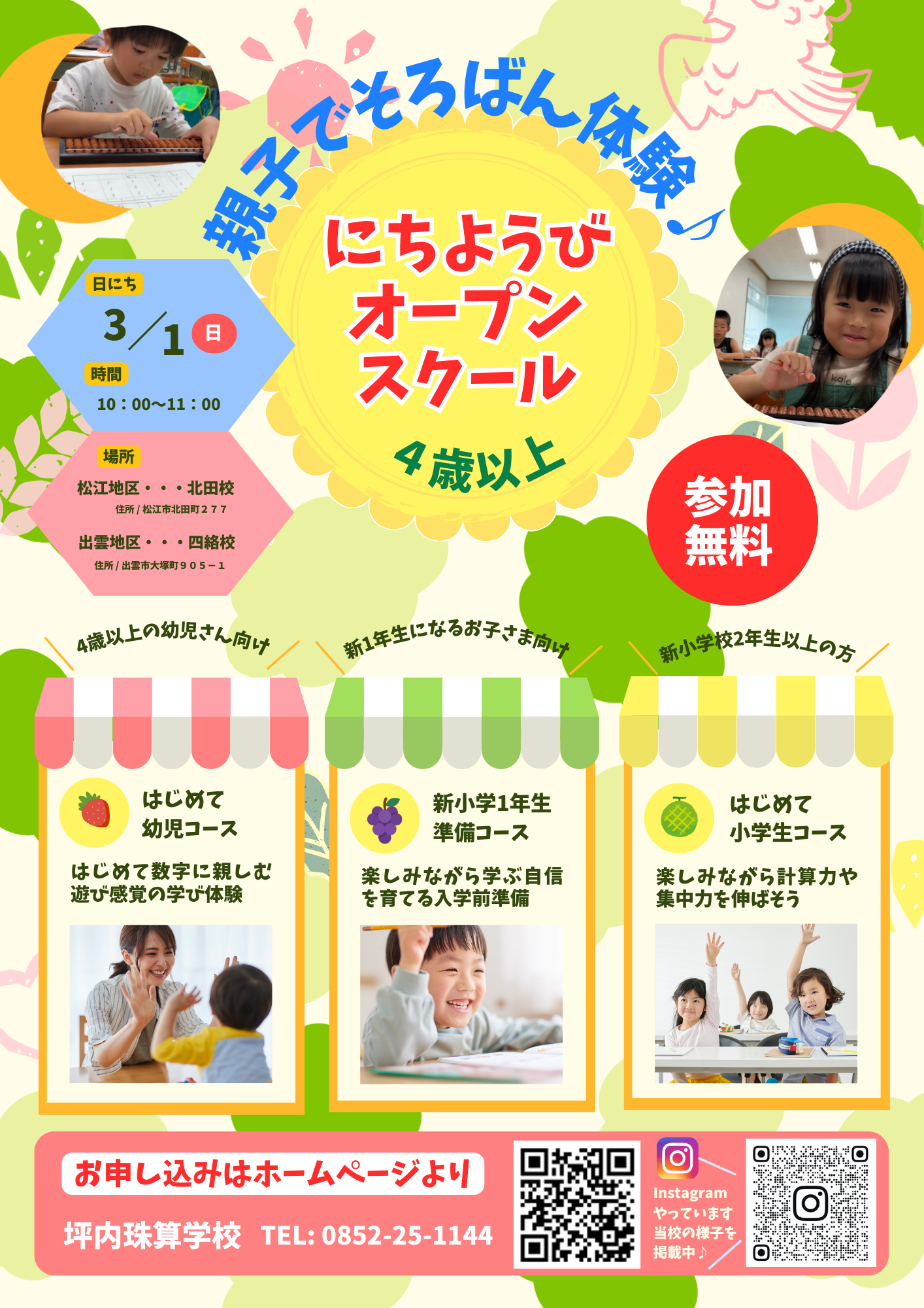 ◆お申込みの際に、お問い合わせ内容の箇所へ「日曜オープンスクール希望」と記載ください。お申込みはこちら↓